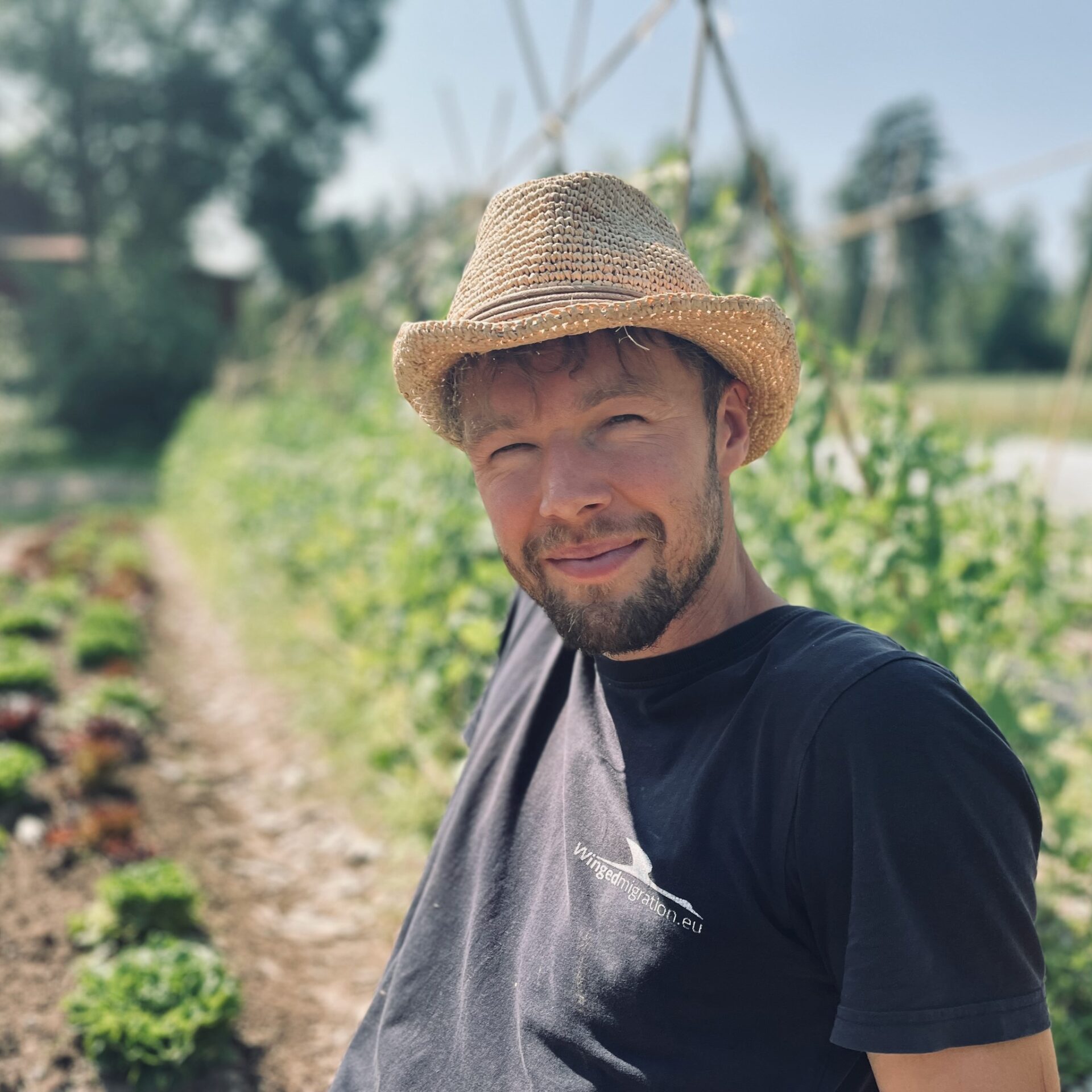 Vi mellanlandar på Engsro Gård (läs mer om odlingen här) där vi möter den härlige fransmannen David som bedriver biointensiv odling.